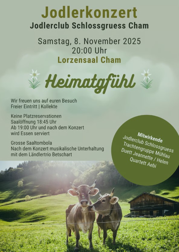 Der Jodlerclub Schlossgruess Cham lädt alle Jodlerfreunde herzlichst zum Jodlerkonzert "Heimatgfühl" ein.